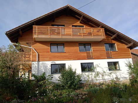 Im Sommer 2021 durften wir einen langjährigen Kunden aus Niederhöfen bei dem Ersatzneubau des Bauernhauses mit unserer Holzbautätigkeit unterstützen.